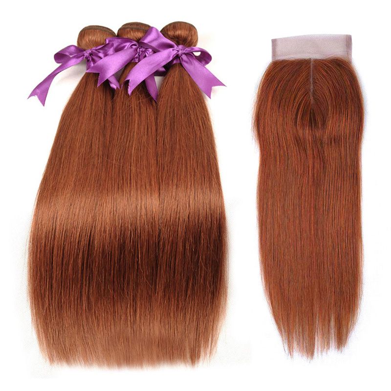 Straight 33 Color 3 Bundles With 4x4 Middle Part Lace Frontal Closure Malaysian Human Hair Weaves